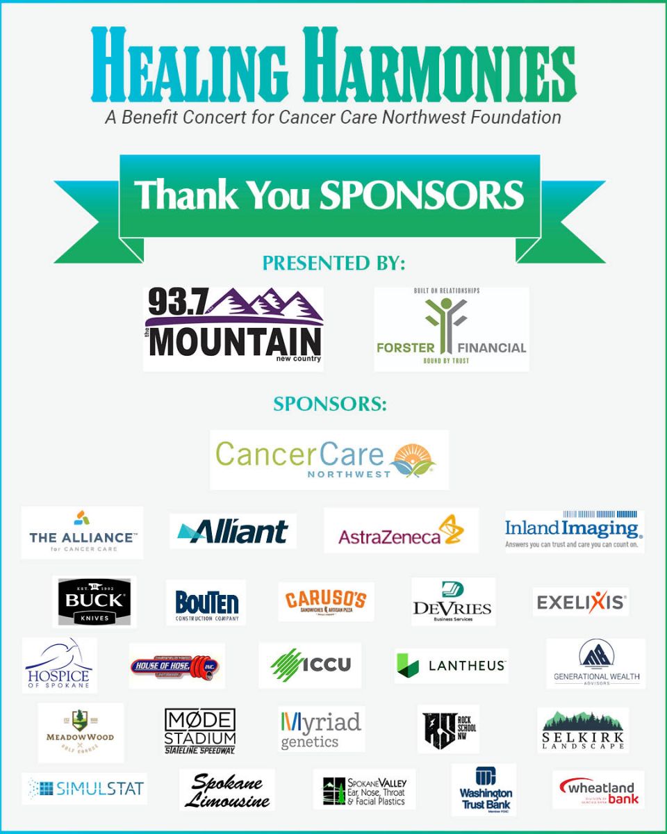 Healing Harmonies, a concert to benefit Cancer Care Northwest Foundation, is a unique event that combines the healing powers of country music with the fundraising efforts of this local non-profit. With your sponsorship, you will be supporting Inland Northwest cancer patients and their families during their battle with cancer, while also benefiting from the promotional exposure that our sponsorship packages provide.